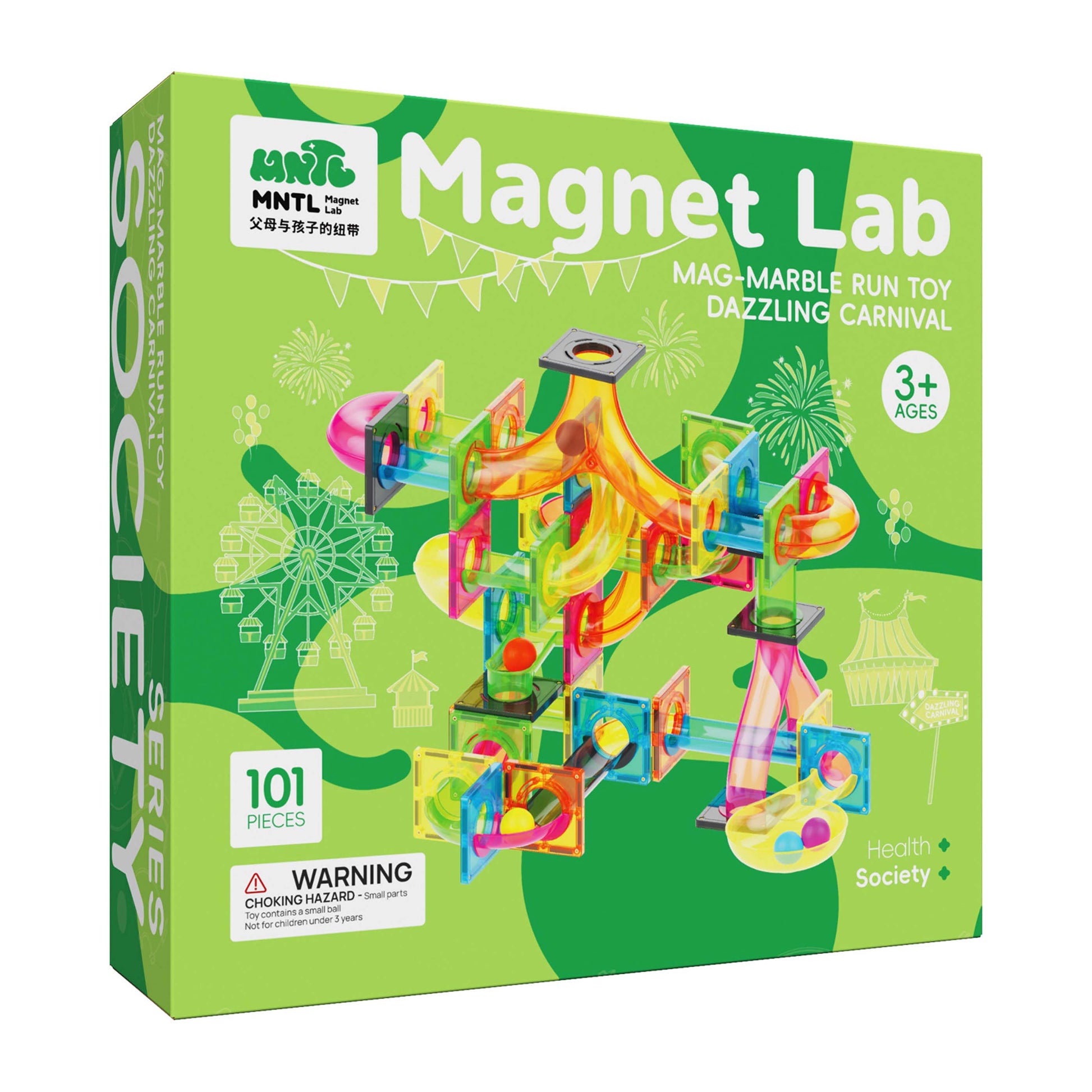 Ignite imagination and STEM learning with the MNTL Magnetic Tiles Marble Run – 101 pcs Fluorescent Colour Set. Featuring vibrant glow-in-the-dark tubes and wooden marbles, children can design towering, dynamic marble tracks and watch their creations come to life. Crafted from food-grade, BPA-free ABS plastic with extra-strong magnets and riveted safety features, this set is built to last and safe for kids aged 3 years+.