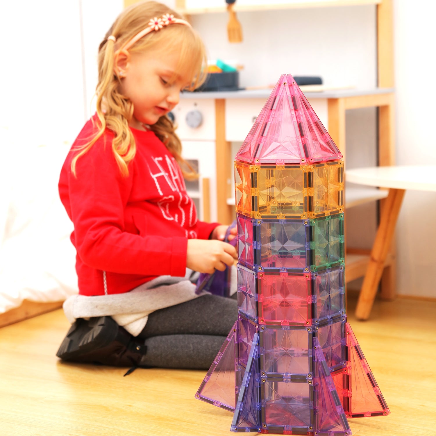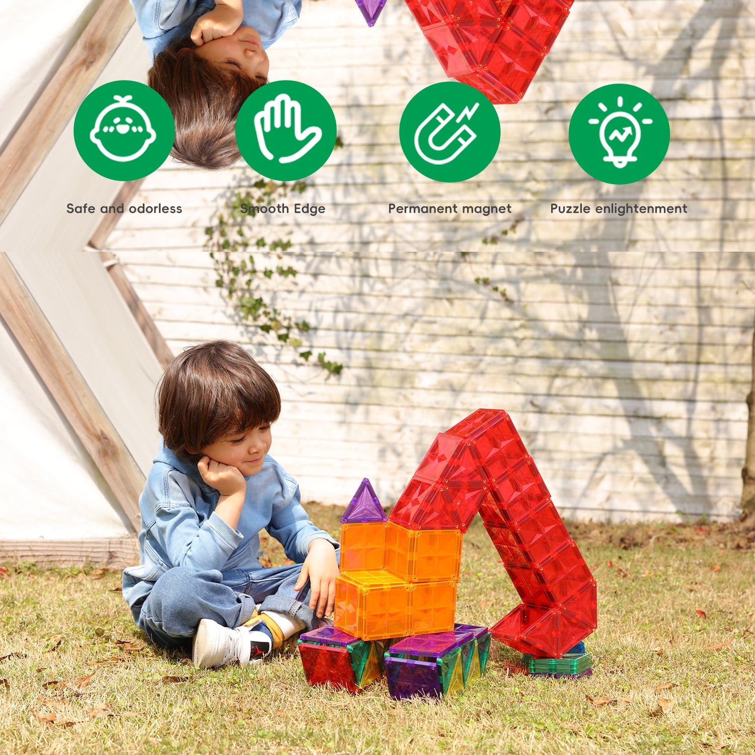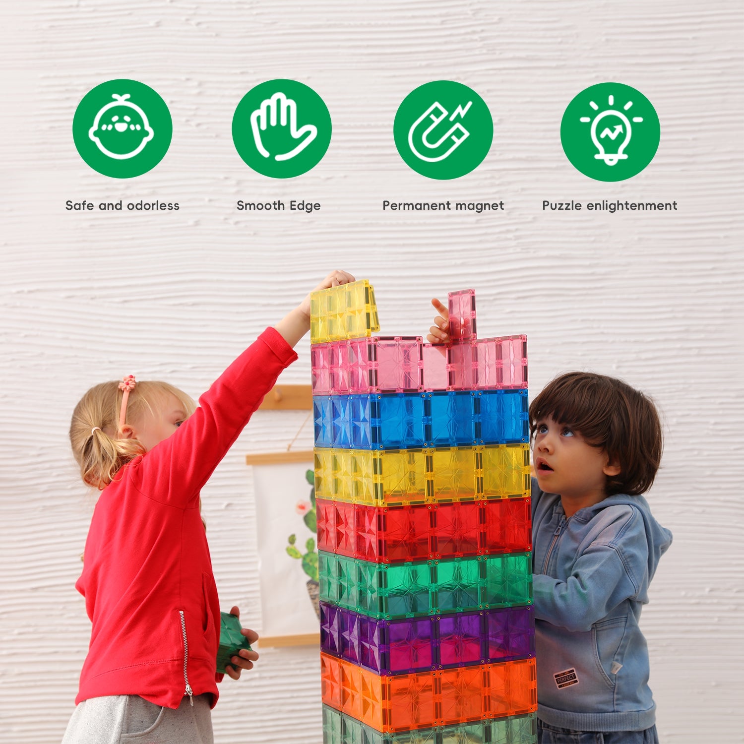 Magnetic tiles provide children with open-ended experiences where the only limitation is their imagination. Designed for ages three and up, these magnetic toys for kids spark hours of imaginative, unstructured play, allowing them to bring their dreams to life. STEAM-approved: Offering endless possibilities for young, imaginative thinkers, our STEAM-approved magnetic blocks inspire hours of instruction-free playtime while helping children develop math, science, spatial, and tactile skills. They are also found in educational settings everywhere, fostering teamwork and problem-solving skills as well. They are also durable enough to withstand years of imaginative creativity, whether children play inside or outside.