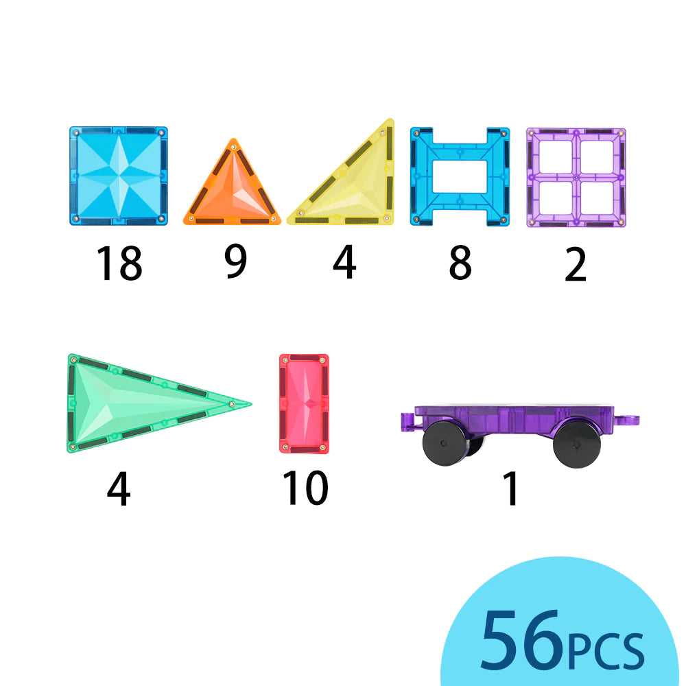 Magnetic tiles provide children with open-ended experiences where the only limitation is their imagination. Designed for ages three and up, these magnetic toys for kids spark hours of imaginative, unstructured play, allowing them to bring their dreams to life. STEAM-approved: Offering endless possibilities for young, imaginative thinkers, our STEAM-approved magnetic blocks inspire hours of instruction-free playtime while helping children develop math, science, spatial, and tactile skills. They are also found in educational settings everywhere, fostering teamwork and problem-solving skills as well. They are also durable enough to withstand years of imaginative creativity, whether children play inside or outside.