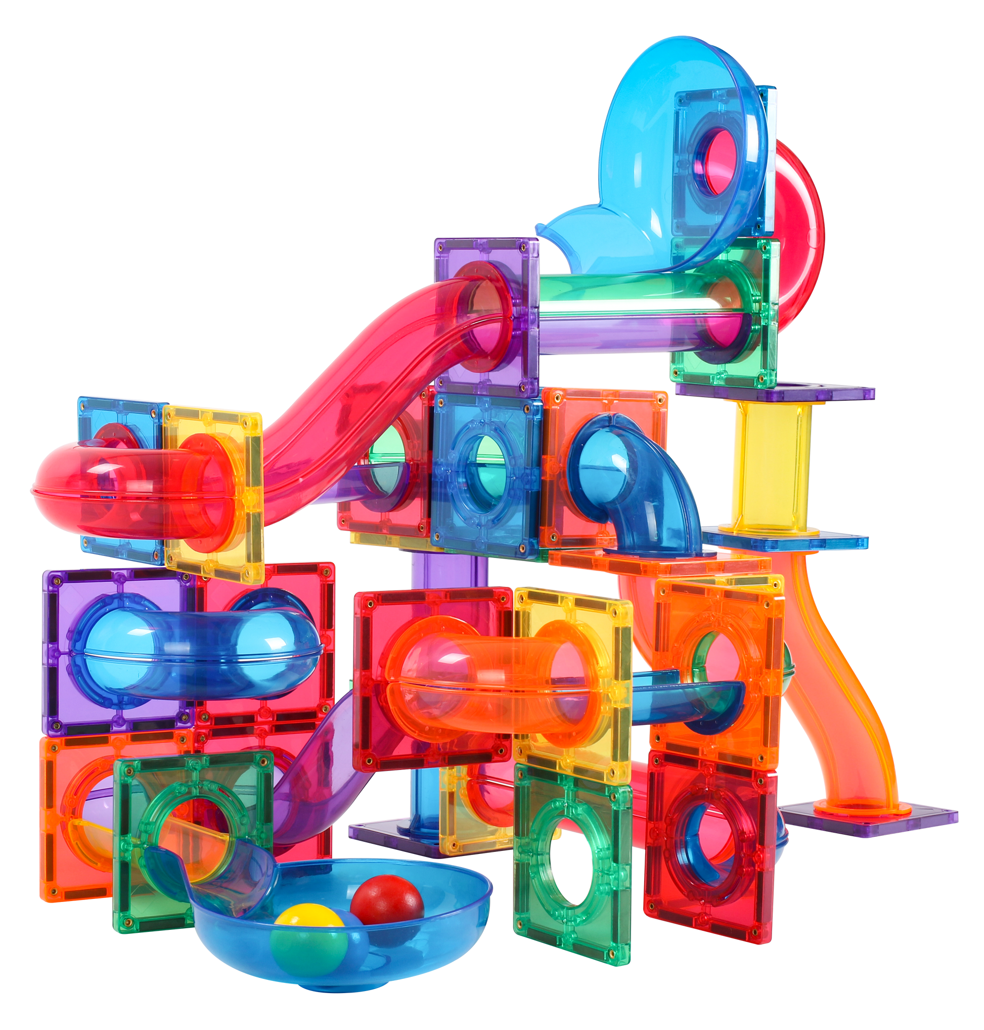 Our easy-to-handle magnetic tiles and ball run tubes are completely safe for children to enjoy, as they’re made with food-grade ABS plastic that’s BPA-free and contains no latex or phthalates. They’re also durable enough to withstand years of imaginative creativity, whether children play inside or outside.